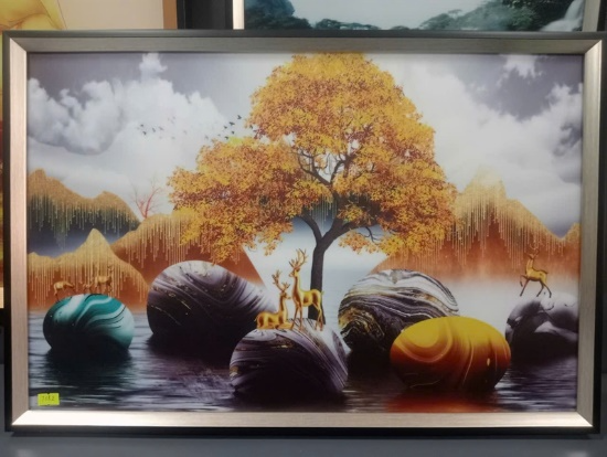 • Công năng: Thiết kế mang phong cách phong thủy với hình ảnh cây vàng tài lộc và đàn hươu mang ý nghĩa may mắn, thịnh vượng. Ánh sáng dịu nhẹ giúp tôn vinh không gian phòng khách, phòng làm việc, hay các khu vực trang trí cần thu hút tài khí.
